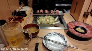 そこから3人で2時間半ほど雑談してから出発して、三宮で早い夕食でした。ハンバーグと牛タン。美味しかったです。