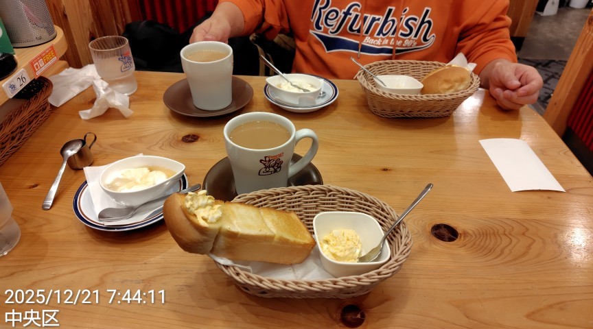 7:00に下船して、三宮まで15分ほど歩いて、朝食の店を探したのですがなかなか見つからず、結局コメダ珈琲に入りました。