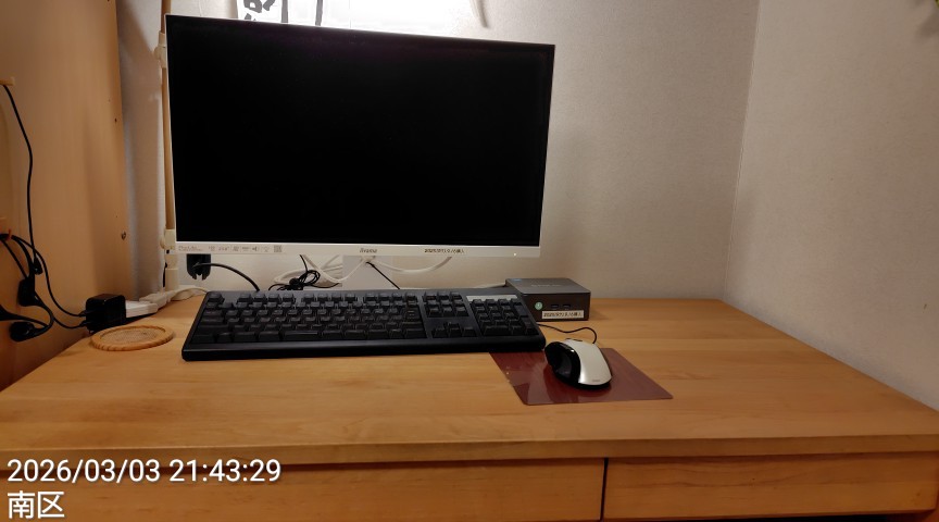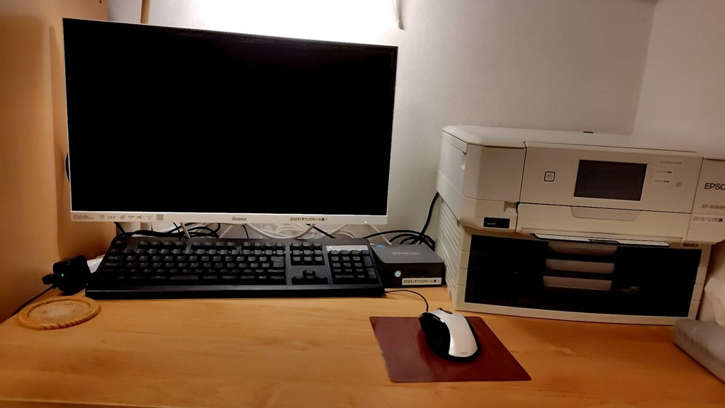 パソコン(キーボード右奥の小さい箱)とモニタは昨年9月に購入したのですが、こうなることが分かっていたら、モニタをワンサイズ大きいのにすれば良かったって少し後悔もあります。でも、パソコン&モニタで36,223円と激安だったので文句は言えませんね。