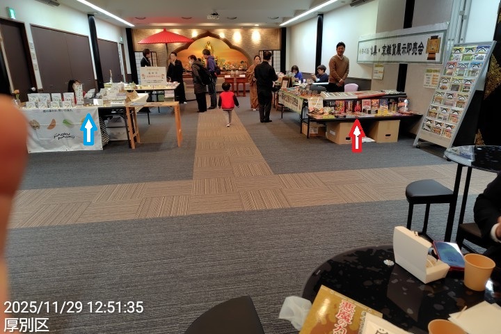 青矢印の辺りに売っていた燻製ナッツも買いました。これは美味しかったです。