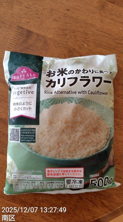 私は白米を食べないので、もちろんカリフラワーライスです。量は100gです。