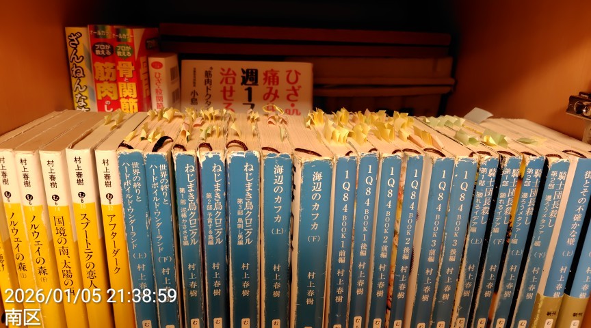 私は長年のハルキスト(長編小説のみ)なので、同じ本をグルグル何回も読んでいます。気に入ったフレーズには鉛筆で線を引いて付箋するのが好きで、本が付箋だらけになっています。一番好きなのは「世界の終わりとハードボイルドワンダーランド」です。でも付箋が多いのは1Q84です。
