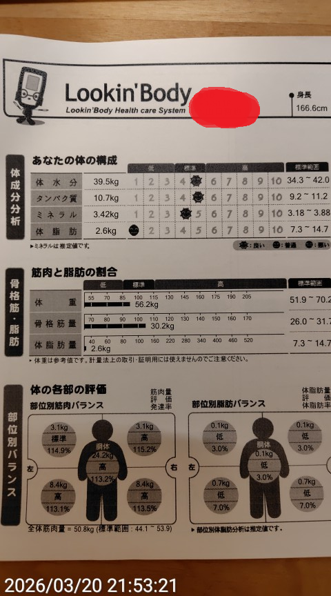 今日は筋トレジムで10回に1回のInBody測定でした。
