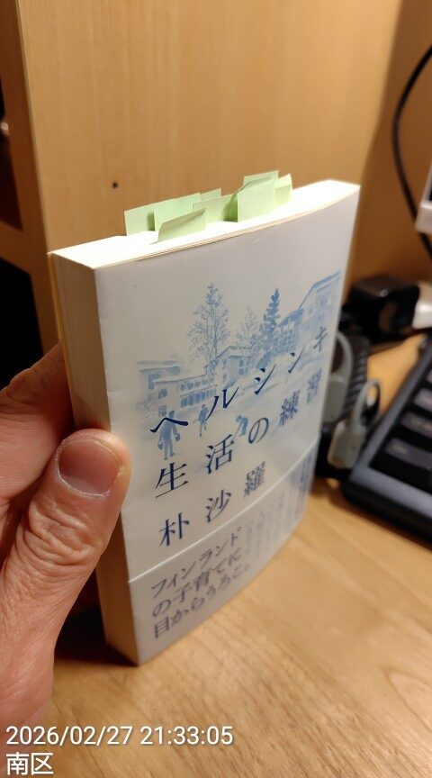 フィンランド人の教育に対する考え方も参考になったので、kumiにも読んでもらおうと思っています。付箋(響く文章に線を引いたページ)はまだ少しですが、また繰り返し読みたいと思います。