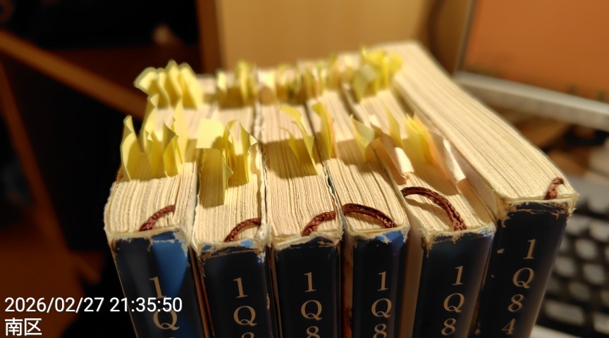 ハルキストの私は「1Q84」をお願いしました。何周もしているので私の本はボロボロで付箋は多いです。でも、なぜか6冊目だけは付箋が皆無でしたので、ここは読み返さなければ。